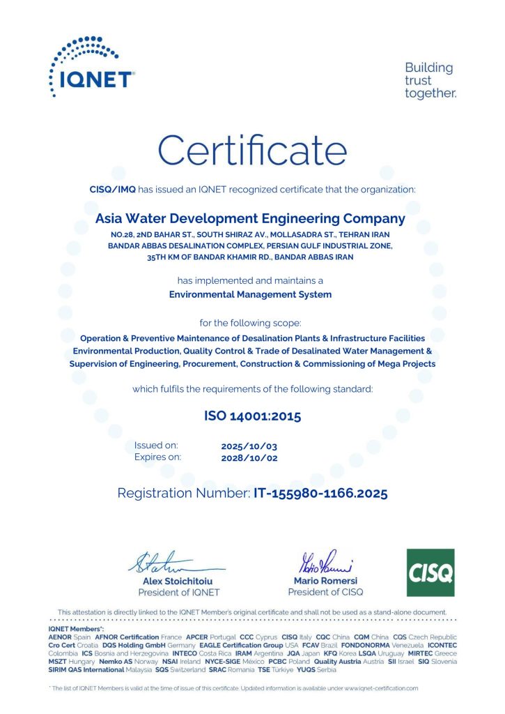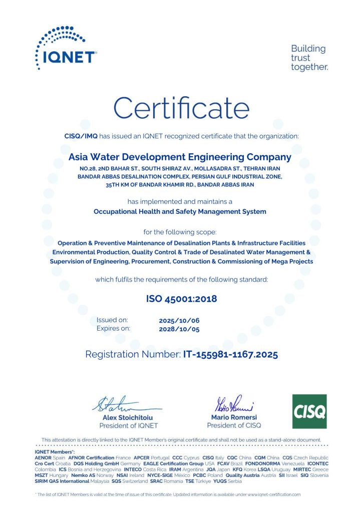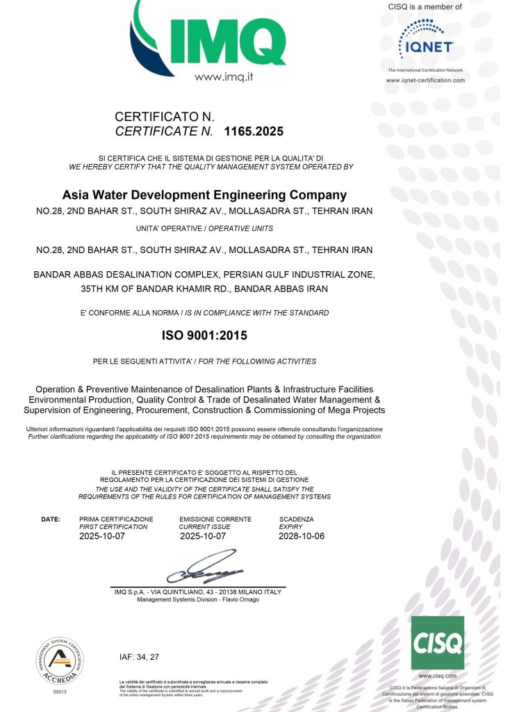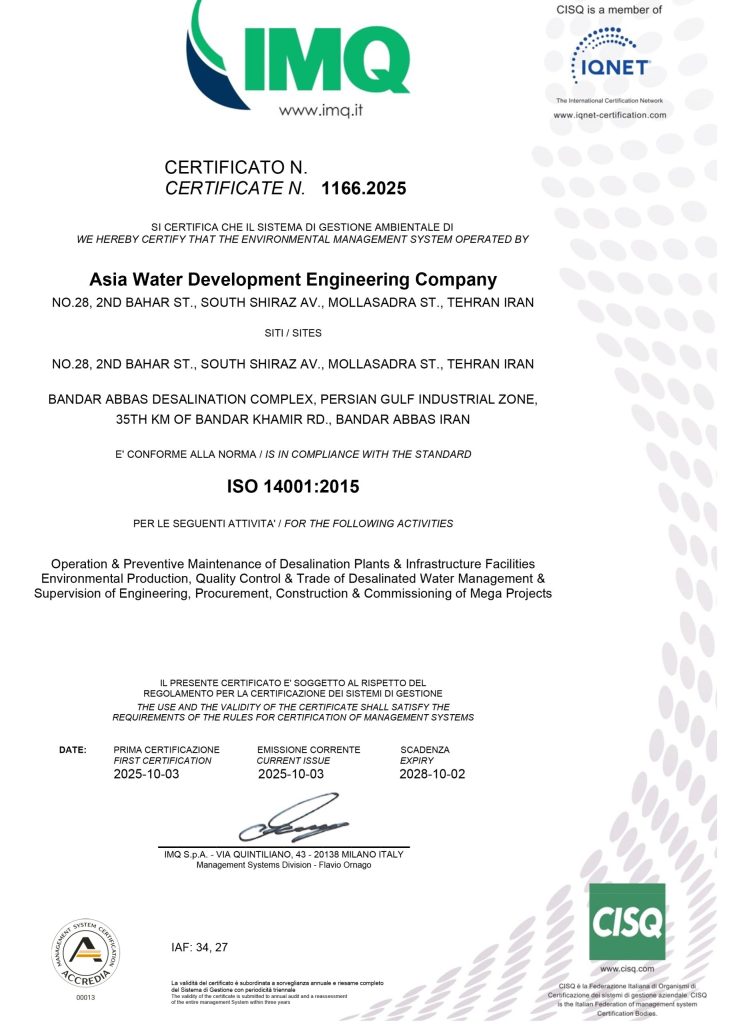 Certificates and standards Obtained Integrated Management System (IMS) certifications from IMQ Italy ISO 9001:2015 ISO14001:2015 ISO45001:2018